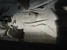![]() Detalle de la estatua yacente de Bertrada de Laon en la basílica de Saint-Denis. | ||