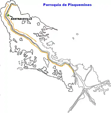Localización de Bertrandville en el mapa de la Parroquia de Plaquemines.
