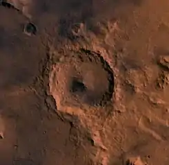 - Coordenada fijada tomando como base la latitud planetocéntrica con longitud Oeste (5.28, -278.84); véase Unión Astronómica Internacional (noviembre de 2010). «Beruri on Mars» (en inglés). Consultado el 23 de diciembre de 2010.