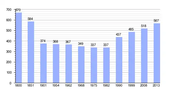 Los datos demográficos contemplados en este gráfico de la comuna de Betteville[4] se han cogido de 1800 a 1999 de la página francesa EHESS/Cassini, y los demás datos de la página del INSEE.[5]