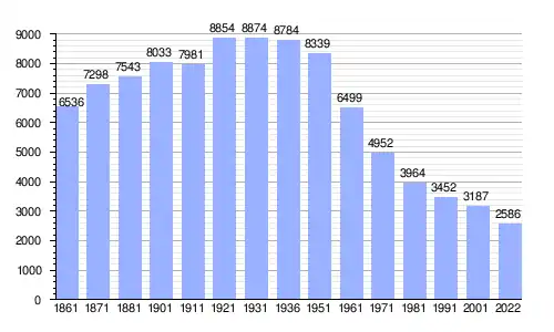 Gráfica de evolución demográfica de Bettola entre 1861 y 2022 |
