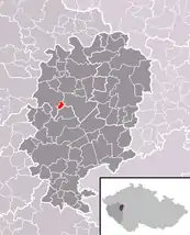 Se encuentra ubicada al norte de la región, en la cuenca hidrográfica del río Berounka —un afluente izquierdo del río Moldava que, a su vez, lo es del Elba—, y cerca de la frontera con la región de Bohemia Central.[1]