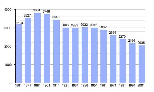 Gráfica de evolución demográfica de Bianzè entre 1861 y 2001 |