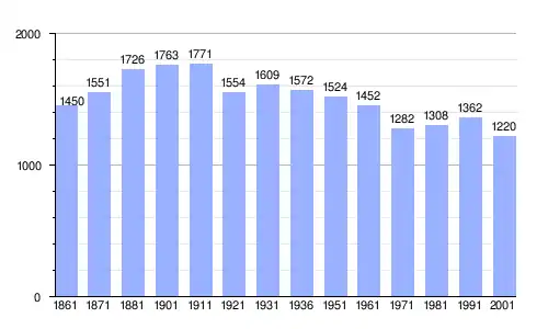 Gráfica de evolución demográfica de Bianzone entre 1861 y 2001 |