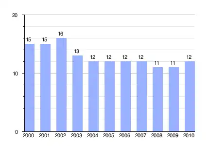 Gráfica de evolución demográfica de Biascas de Obarra entre 2000 y 2010 |