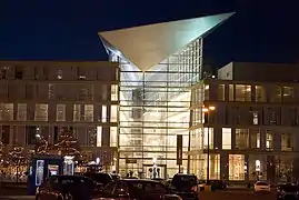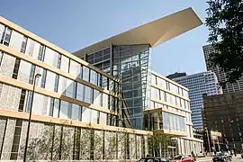 Después de muchas décadas, la biblioteca se consideró abarrotada y desactualizada y se comenzaron los planes para una nueva biblioteca en una ubicación diferente. El Centro de Información y Biblioteca Pública de Mineápolis (MPLIC), inaugurado el 28 de enero de 1961 en la calle 4 y Nicollet (el sitio del edificio actual). El nuevo edificio de vidrio y acero de cuatro pisos reemplazó al antiguo castillo de piedra, que fue demolido (el espacio ahora es un estacionamiento).[2] El edificio incluía una biblioteca, así como un planetario, auditorio y un pequeño museo en su sótano que se hizo famoso entre los escolares por sus momias egipcias. La nueva ubicación en el entonces deteriorado distrito de "bucle inferior" convirtió a la biblioteca en una "piedra angular" de la remodelación de 1960 del centro de Mineápolis.[4]