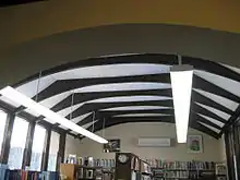 La biblioteca está diseñada teniendo en cuenta los movimientos arquitectónicos de finales del siglo XIX y principios del siglo XX. Si bien contiene muchos elementos neoclásicos, la asimetría del edificio y el estilo alegre y creativo son características distintivas del movimiento Arts and Crafts.[6] Esta influencia se ve de manera más prominente en el interior del edificio.[6]