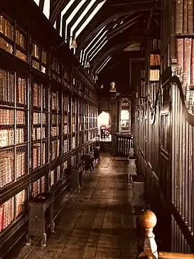 Los libros estaban, originalmente, sin catalogar y colocados en las prensas por orden de tamaño. El primer catálogo no se produjo hasta 1791, y luego se escribió en latín y solo enumeró el tamaño y el tema de cada libro. La práctica de encadenar los libros se abandonó a mediados del siglo XVIII cuando se erigieron puertas para evitar robos.