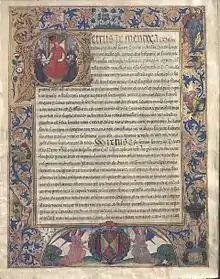 Por otro lado, el Colegio Mayor de Santa Cruz fundado por el Cardenal Mendoza en el año 1483, contó desde sus inicios con una librería propia, confirmando su preocupación por los libros y dedicando una amplia sala del edificio del Colegio para uso de los colegiales. Su ubicación ocupaba toda la fachada principal en un amplio salón del primer piso del Palacio, síntoma de la importancia concedida, de tal manera que en las Constituciones del año 1494 otorgadas por el Cardenal Mendoza para la organización del Colegio hay algunos capítulos encaminados a salvaguardar los libros. Años más tarde se añadirían otros para regular la apertura de la biblioteca y nombrar un encargado de la misma que velase por sus fondos. Se sabe poco del número de libros que la componían en su origen, obras del propio Cardenal, donaciones y adquisiciones posteriores. Un inventario realizado en los años 1589 y 1590 desvela que acogía 970 volúmenes dispuestos en los estantes de acuerdo con las materias de cánones, leyes, artes, medicina y teología.[1]
