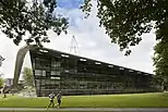 En la sala central el escritorio de préstamos ocupa el espacio en el fondo del cono, rodeado por puntales de acero, con la pared del Este cubierta por libreros suspendidos de acero con una altura de cuatro piso y accesibles vía escalera.[9][10] La orilla exterior del edificio es utilizado para oficinas de personal, con una ventana exterior plenamente barnizada.[11] La biblioteca está localizada en el centro del campus junto al auditorio de estilo Brutalista diseñado por Jo furgoneta den Broek y Jaap Bakema, lo cual proporciona un contexto espacial nuevo al edificio.[12] El edificio de la biblioteca recibió premios como el Premio para el Milenio, Corus Construction (2000), y ha sido seleccionado como una de las bibliotecas más originales y bellas del mundo por Condé Nast Traveler y CNN Travel respectivamente.[3][13][14]