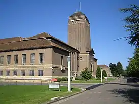 El nuevo edificio de la Biblioteca de la Universidad fue diseñado por Giles Gilbert Scott , quien también diseñó el vecino Clare Memorial Court (parte de Clare College ), y fue construido entre 1931 y 1934. Es un edificio catalogado de Grado II .[6] En el interior hay varias estanterías para libros de los siglos XVII y XVIII, incluidas las diseñadas para la antigua Biblioteca de la Universidad por James Essex en 1731-1734.Los fondos para la nueva biblioteca fueron recaudados por universidades y donantes privados. El filántropo estadounidense John D. Rockefeller proporcionó la mayor parte de los fondos para la construcción de la biblioteca. Al sentir que necesitaba una entrada más grandiosa, Rockefeller persuadió al arquitecto para que agregara la distintiva torre frontal. La torre se puede ver a varios kilómetros de Cambridge.