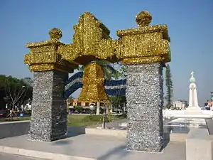 ![]() Imagen usada para identificar las celebraciones del Bicentenario, colocada en una plaza en San Salvador. | ||