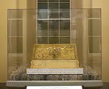 El Parlamento del Reino Unido prestó una de las cuatro copias existentes de la Magna Carta para su exhibición en el Capitolio de los Estados Unidos. El documento fue mostrado en una caja diseñada por el artista Louis Osman y que consistía de oro, acero inoxidable, rubíes, perlas, zafiros, diamantes y esmalte blanco. Estaba sobre una base de pegmatita y arenisca de Yorkshire. El documento fue exhibido sobre una réplica de oro desde el 3 de junio de 1976 hasta el 13 de junio de 1977, fecha en que fue devuelto. La caja y la réplica de oro se mantienen en exhibición en el Capitolio.[6]