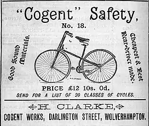 La primera bicicleta en demominarse "de seguridad" fue diseñada en 1876[7] por el ingeniero inglés Harry John Lawson (también citado como Henry), a pesar de que otras bicicletas similares habían sido desarrolladas anteriormente, como la construida por Thomas Humber en 1868.[8] Diferentes a los biciclos, en las bicicletas de seguridad los pies del conductor quedan cerca del suelo, facilitando la maniobra de parar el vehículo. Los pedales impulsan la rueda trasera, por lo que los pies del ciclista permanecen en un lugar más seguro, alejados de los radios de la rueda delantera. Los primeros modelos utilizaban pedales oscilantes para accionar la rueda trasera. No fue hasta 1879 cuando se introdujo la cadena, una nueva tecnología importante que anteriormente había sido solo utilizada en triciclos. El modelo de Lawson no tuvo mucho éxito, quizás debido a su considerable coste, a su mayor peso y a su relativa complejidad técnica comparada con la simplicidad del biciclo.[7]
