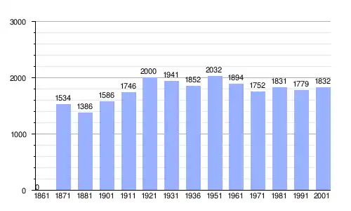 Gráfica de evolución demográfica de Bicinicco entre 1861 y 2001 |