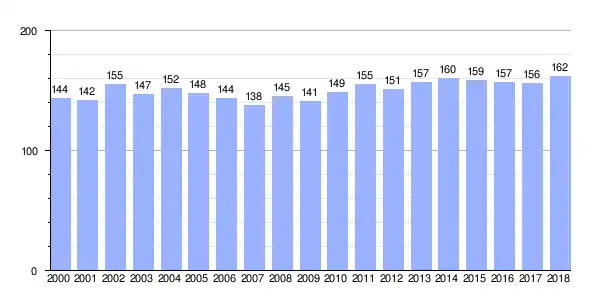 Gráfica de evolución demográfica de Biduído de Abaixo entre 2000 y 2018 |