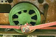 En general, todos los vehículos ferroviarios disponen de sistemas de suspensión con resortes, dado que las irregularidades de las vías podrían hacer que las ruedas se despegaran de los raíles, causando daños por impacto tanto en la vía como en el material móvil. Las ruedas motrices generalmente se diseñan de modo que tengan una holgura de movimiento vertical de alrededor de 1 pulgada (2,5 cm). Cuando solo hay dos ejes acoplados, este valor de desplazamiento solo ejerce una ligera tensión en los pasadores del cigüeñal. Sin embargo, con más ejes, se deben tomar medidas para permitir que cada eje se mueva verticalmente independientemente de los demás sin doblar la barra de acoplamiento. Esto se puede lograr permitiendo que la biela se desplace localmente en cada pasador intermedio, ya sea diseñando el pasador como una bisagra,[3][4] o agregando una articulación adyacente al pasador, como se muestra en la ilustración.