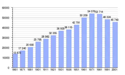 Gráfica de evolución demográfica de Biella entre 1861 y 2001 |