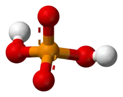 ![]() Modelo bola y palo de los aniones dihidrogenofosfatos | ||