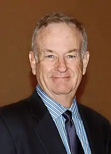 William James O'Reilly Jr.[1] (10 de septiembre de 1949) es un presentador de televisión, director de un programa de radio, escritor y columnista estadounidense de línea conservadora.[2][3] A finales de los años 1970 y 1980, trabajó para estaciones locales y luego para CBS News y ABC News. Fue el presentador del programa Inside Edition de 1989 a 1995. En 1996, comenzó a trabajar para Fox News Channel, donde presentó The O'Reilly Factor hasta 2017. Ha escrito varios libros y entre 2002 y 2009 presentó The Radio Factor.[4] Perdió su puesto en 2017 tras una investigación de New York Times, que reveló que durante años él y la Fox News habían pagado 13 millones de dólares en acuerdos extrajudiciales por acoso sexual.[5][6][7][8]