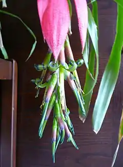 Billbergia nutans (lágrimas de reina, avena de salón) es una epífita bromélida nativa de Brasil, Paraguay, Uruguay, Argentina.