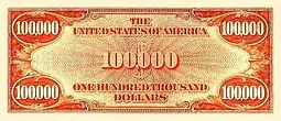 ![]() Anverso del billete de cien mil dólares. | ||