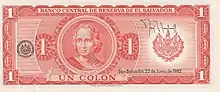 El Billete de un Colón Salvadoreño es el billete de más baja denominación circulado en El Salvador. El colón fue emitido desde 1934 por el Banco Central de Reserva de El Salvador, organismo gubernamental encargado de la política monetaria del país.
