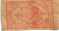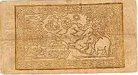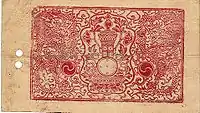Cabe mencionar por último las series de 10, impresas en tres colores (rojo, azul y negro) entre 1940 y 1948, 5 –también sin fecha– y 25 srang, emitidas de 1950 a 1955.