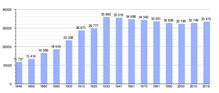 Gráfica de evolución demográfica de Binche entre 1846 y 2019 |