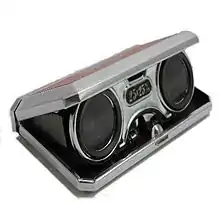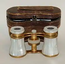 Una versión posterior de los clásicos binoculares de teatro del siglo XIX se hizo popular a mediados del siglo XX. Consisten en cuatro lentes (dos oculares y dos objetivos) montadas en el interior de una pequeña caja metálica rectangular (de aluminio o acero, aunque también existen versiones más baratas en plástico). Cuando se abre la tapa de la caja, las lentes se elevan mediante un sencillo mecanismo articulado, formando un prisma triangular con las dos tapas, conformando unos sencillos binoculares.
