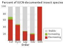 Con solo 20 000 especies descritas por año es posible que muchas especies nunca lleguen a ser descritas a menos que algo cambie. De los 24 órdenes de insectos, los más numerosos son cuatro: Coleoptera, Diptera, Hymenoptera y Lepidoptera, que al presente representan 670 000 especies.[3]