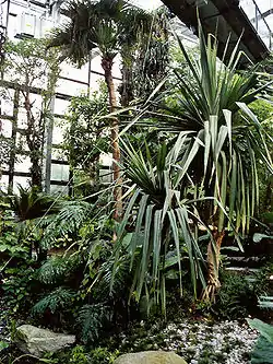 El edificio alberga aproximadamente unas 20 000 plantas con unas 350 especies diferentes y además animales tropicales tales como, iguanas, serpientes, arañas, ranas en libertad, Mantis, Geckos y faisanes.