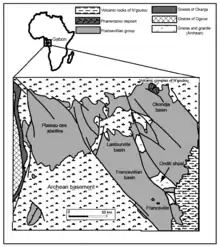 El grupo fósil de Franceville (también conocido como Gabonionta o biota francevillense) es un conjunto de organismos macroscópicos de 2100 millones de años de antigüedad (período Riásico), conocidos a través de los restos fósiles encontrados en Gabón, al oeste de África central, en la Formación Francevillense B, una formación geológica del Paleoproterozoico. Los fósiles se consideran los indicios de las primeras formas de vida pluricelular junto con otro fósil macroscópico Diskagma de hace 2200 millones de años.[1] Los fósiles fueron descubiertos por un equipo internacional liderado por el geólogo franco-marroquí Abderrazak El Albani, de la Universidad de Poitiers, Francia. Aunque los fósiles aún tienen que ser asignados formalmente a una clase taxonómica, el Museo de Historia Natural de Viena los reconoce, de manera informal y colectiva, desde el 2014 con el nombre Gabonionta. La biota incluye un conjunto de 250 géneros.[2] Los fósiles han sido interpretados como mohos mucilaginosos, es decir organismos eucariotas tempranos. La presencia de esteranos y su gran complejidad sugieren que son eucariotas por lo que podrían ser los primeros eucariotas que aparecen en el registro fósil junto con el fósil Diskagma.[3]