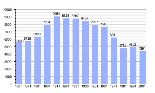 Gráfica de evolución demográfica de Bisaccia entre 1861 y 2001 |
