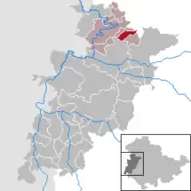 Se encuentra ubicado cerca de la ciudad de Eisenach y de la frontera con el estado de Hesse.