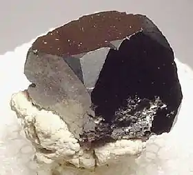 Suele encontrarse en el interior de cavidades y fisuras de rocas riolitas. También puede aparecer en yacimientos de minerales de manganeso que han sufrido metamorfismo, pneumatolítico o hidrotermal. Un mineral que se encuentra típicamente asociado a éste es la braunita (en menas de manganeso). Otros minerales asociados son topacio, spessartina, berilo, cuarzo, sanidina, pseudobrookita y hematita.[5]