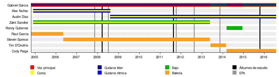 - Austin Díaz - guitarra rítmica, coros (2008-2016)