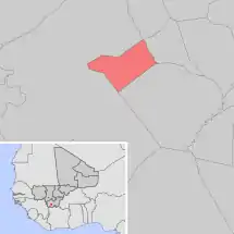 Se encuentra ubicada al suroeste del país y al oeste de la región de Sikasso, a poca distancia del río Níger, de la frontera con República de Guinea y Costa de Marfil y al sur de la capital nacional, Bamako.