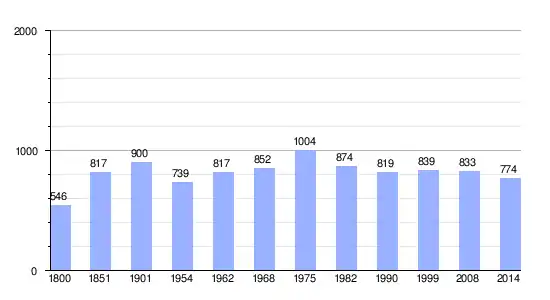 Los datos demográficos contemplados en este gráfico de la comuna de Blanzac-Porcheresse[4] se han cogido de 1800 a 1999 de la página francesa EHESS/Cassini, y los demás datos de la página del INSEE.[5]