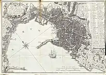 El asedio de Orán comenzó el 29 de junio, con el desembarco de los veintiséis mil hombres de Montemar.[79][75] Tras varios choques, se apoderaron de la plaza el 1 de julio.[80] Sofocadas las últimas resistencias, que habían costado más bajas que la conquista de la ciudad, la expedición regresó a España el 1 de agosto, dejando una guarnición.[81] El 2 de septiembre, Lezo estaba de vuelta en Cádiz.[81]