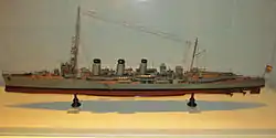 • 6 cañones Vickers 152/50 mm • 4 cañones 47/50 mm • 4 ametralladoras • 12 tubos lanzatorpedos de 533 mm. (4 × 3) • 1 cañón de desembarco de 76 mm. | |