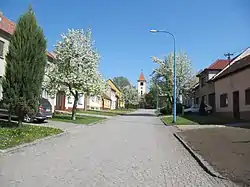 Se encuentra ubicada al sureste de la región, cerca de la orilla del río Morava —un afluente izquierdo del Danubio—, de la frontera con la región de Zlín y Eslovaquia, y a poca distancia al sureste de la ciudad de Brno.[1]