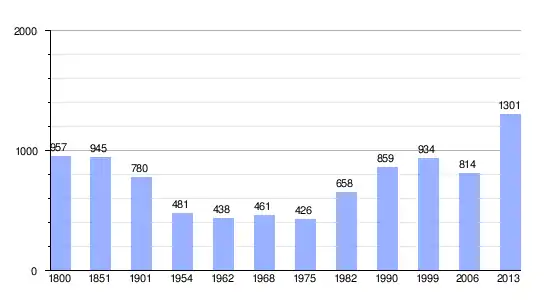 Gráfica de evolución demográfica de Bleury-Saint-Symphorien entre 1800 y 2013 |
