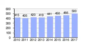 El número de habitantes viene experimentando un ascenso durante la década de 2010 ya que en 2017 había aumentado un 19 % respecto a los que había en 2010.