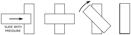 - Se desliza el bloque en forma perpendicular al otro bloque aplicando una presión moderada hasta que forman una cruz.