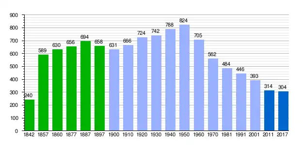 Población de derecho (1842-1897, excepto 1857 y 1860 que es población de hecho) según los censos de población del siglo XIX.[5] Población de derecho (1900-1991) o población residente (2001) según los censos de población del INE.[5] Población según el padrón municipal de 2011[6] y de 2017 del INE. |