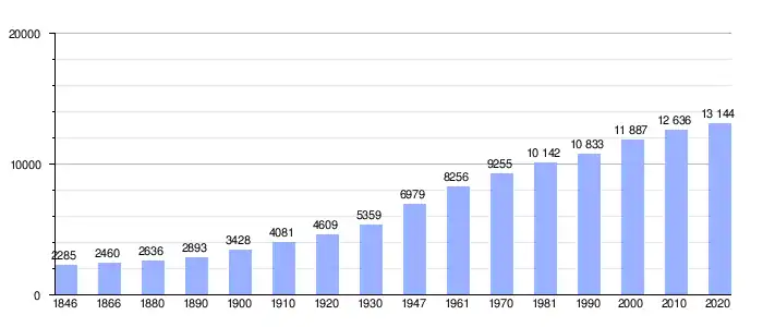 Todos los datos históricos relativos al actual municipio, el siguiente gráfico refleja su evolución demográfica, incluyendo municipios después de efectuada la fusión el 1 de enero de 1977.