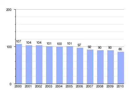 Población de derecho (2000-2010) según los censos de población del INE a 1 de enero de cada año.[6] |