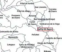 - Norte: Valdearcos de la Vega - Sur: Peñafiel y Castrillo de Duero - Oeste: Curiel de Duero - Este: San Martín de Rubiales (Burgos)