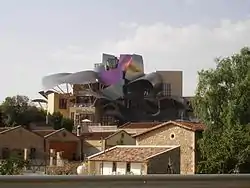 ![]() Vista exterior del Hotel Marqués de Riscal, en la Ciudad del Vino. | ||